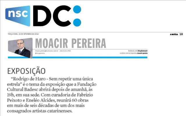 O jornal Notícias do Dia, divulgou nesta sexta-feira (21), a abertura da exposição Rodrigo de Haro – Sem Repetir uma Única Estrela, que ocorreu nesta quinta-feira (20), às 19h, na Fundação Cultural Badesc. Pinturas, desenhos, cartazes e livros manuscritos de coleções particulares e de instituições públicas compõem a exposição que apresenta mais de 60 obras inéditas. A mostra, que tem curadoria de Fabrício Tomazi Peixoto e Eneléo Alcides.