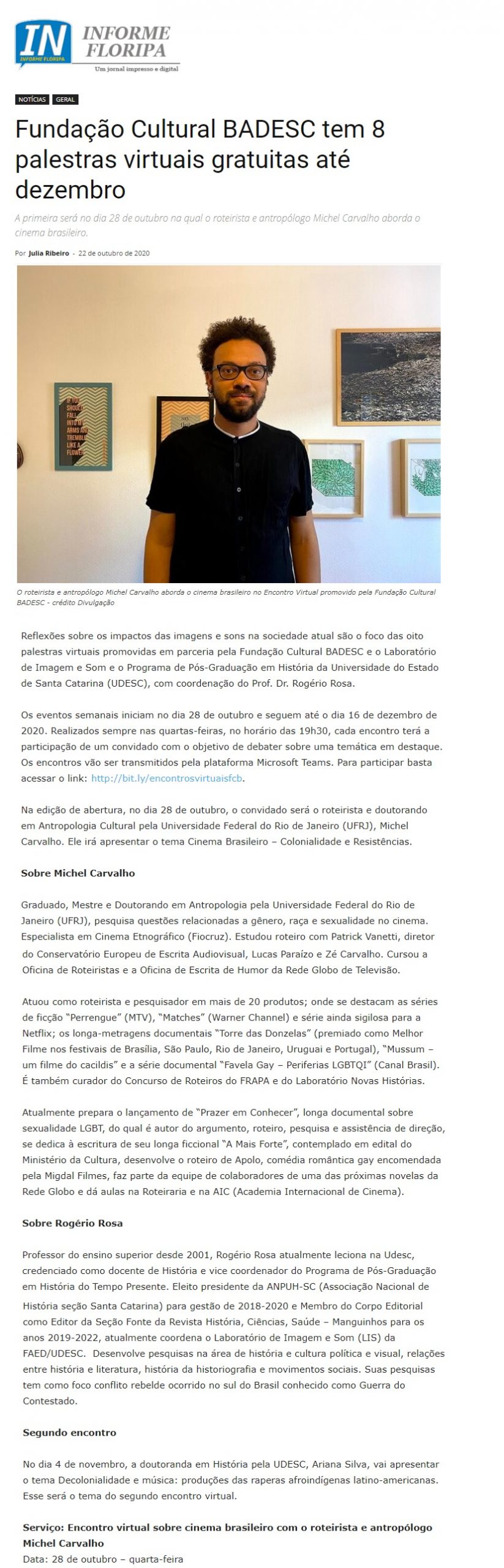 “Louise Bourgeois – tramas de arte e vida”, curso online promovido pela Fundação Cultural BADESC em parceira com a Universidade do Estado de Santa Catarina (UDESC) e o Museu da Escola Catarinense (MESC/UDESC) foi divulgado em uma das colunas no site MakingOf.