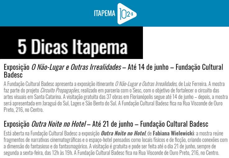 Local: Fundação Cultural Badesc – Rua Visconde de Ouro Preto, 216, Centro – Florianópolis/SC. Visitações de terça a sábado, das 12 às 19h. Telefone: (48) 3224-8846