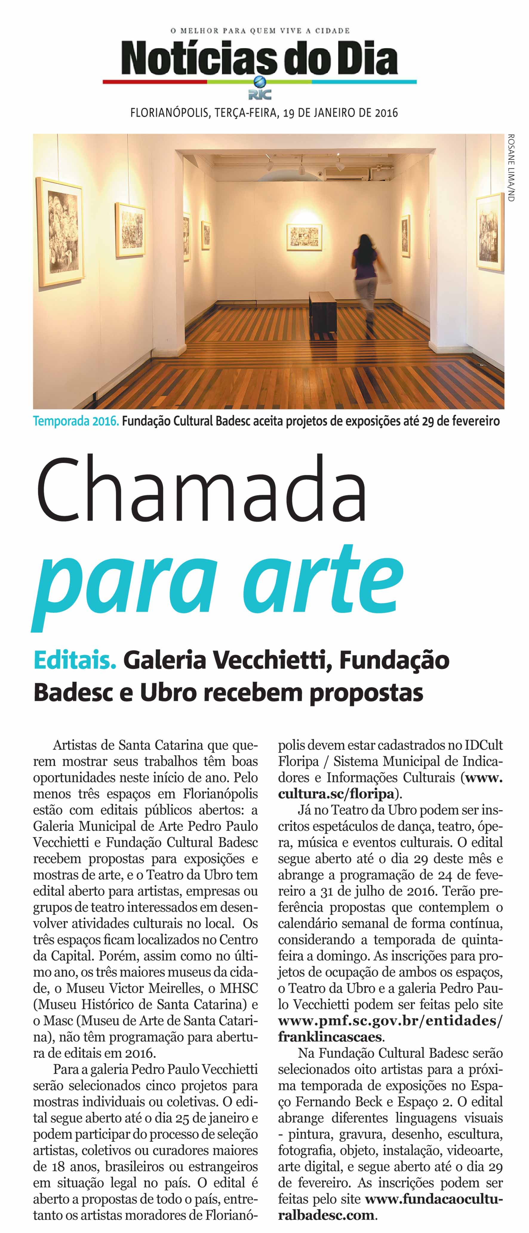 As inscrições para o Edital de Exposições 2015 da Fundação Cultural Badesc foram prorrogadas. Os projetos poderão ser encaminhados pelo correio ou entregues na Fundação até o dia 02 de fevereiro de 2015.