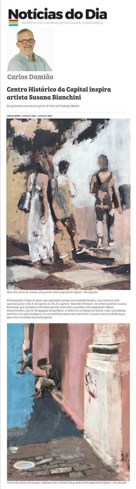 “Ao se debruçar sobre a cidade e captar momentos de rara beleza Susana consegue ver o que a maioria não percebe, ou não quer perceber – o outro – aquele ou aquilo que não me pertence, que não quero que faça parte de mim. Assim, com um clic, registra o instante e usa como suporte para a pintura. Sob seu olhar e pela ação do recorte e edição de imagens, os personagens anônimos – transeuntes moradores de rua, vendedores ambulantes, animais domésticos e a próprio espaço urbano – são resignificados e um diálogo, antes inexistente, se apresenta”, define o curador da exposição, Carlos Alberto Franzoi.