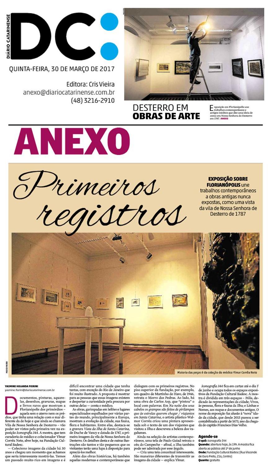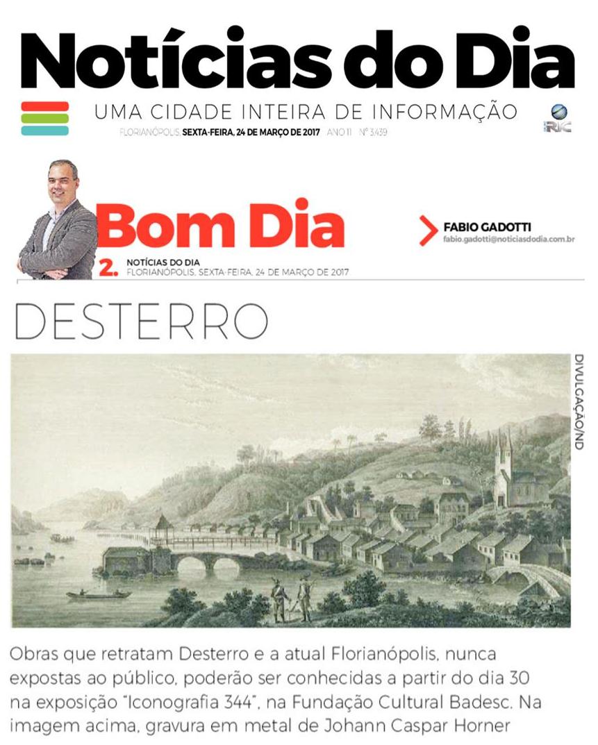 Coleções particulares que têm como tema a Vila de Nossa Senhora de Desterro e a atual Florianópolis serão expostas pela primeira vez na Fundação Cultural Badesc, a partir de quinta-feira (30/03) às 19h. A exposição Iconografia 344, com curadoria do médico Ylmar Correa Neto, torna acessível ao grande público documentos raros, pinturas, aquarelas, desenhos, gravuras, mapas e livros originais dos séculos XVI a XIX.