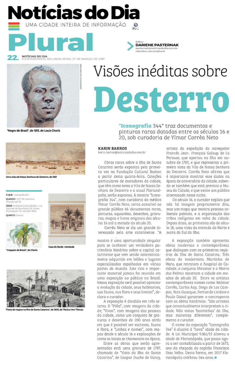 “A mostra é uma oportunidade singular para se conhecer um verdadeiro patrimônio histórico sobre a capital catarinense que vem sendo sistematicamente adquirido em leilões e lugares especializados espalhados em várias partes do mundo. Este rico e importante material jamais foi reunido em uma exposição ao público no Brasil. Nessa exposição será possível apreciar a evolução da cidade, seus habitantes, sua fauna, sua flora e seus limites”, declara Ylmar.